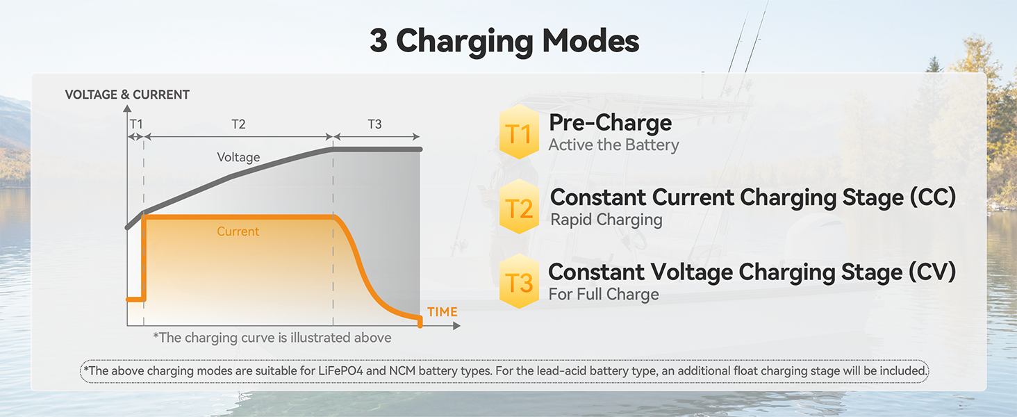 [Smarter Charging with Memory Function] Experience optimized battery life with our 3-stage smart charging (Pre-charge, CC, CV), which automatically switches modes for a thorough and safe charge. The intelligent memory function retains your last battery mode setting after a power outage, so you don't need to reset it every time.