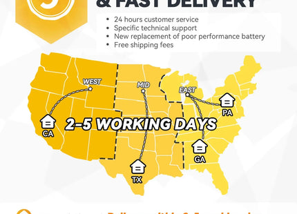 [U.S. Based warehouses & 24hrs Timely Service] Power Queen Rechargeable Battery backs up its batteries with a 5-year warranty. Customers in the United States are expected to receive the battery within 2~5 working days due to our local warehouses in CA, TX, and GA. We provide a strong battery package, quick delivery as well as 24-hour timely customer support.